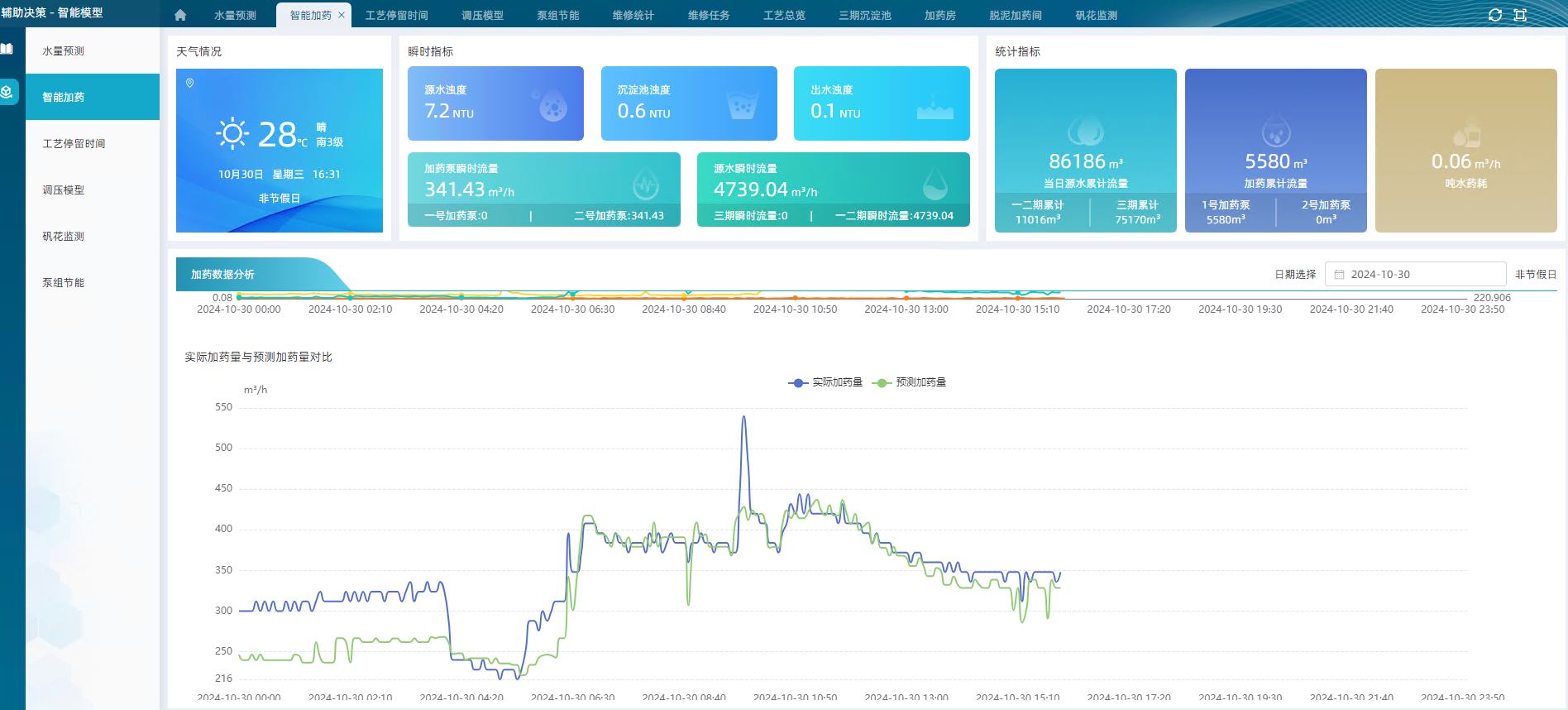 以多維度統(tǒng)計(jì)圖表的方式展現(xiàn)績效結(jié)果,識(shí)別凈水廠運(yùn)行管理薄弱環(huán)節(jié),為水廠運(yùn)行管理優(yōu)化提供豐富的數(shù)據(jù)展示企業(yè)門戶和決策支持,使得管理者的決策更加綜合、合理、可行,形成智能化、科學(xué)化決策,為全廠可視化、精細(xì)化、智慧化運(yùn)營提供數(shù)據(jù)依據(jù)和強(qiáng)有力的支撐。